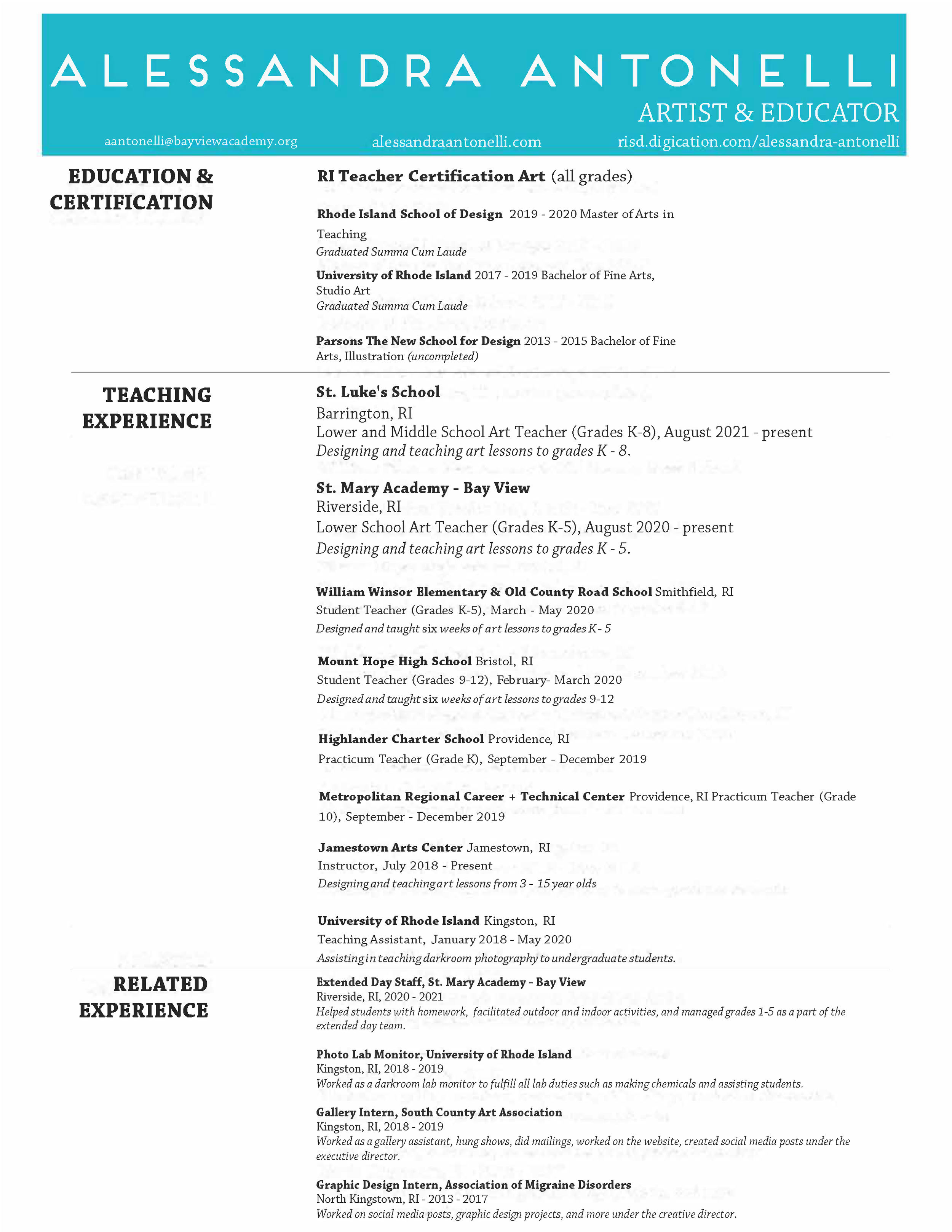 Alessandra Antonelli |  alessandra.antonelli95@gmail.com |  (401) 226 - 4679